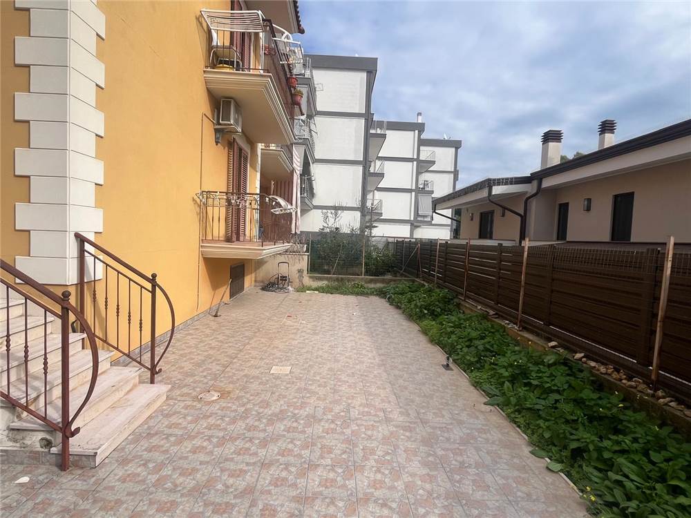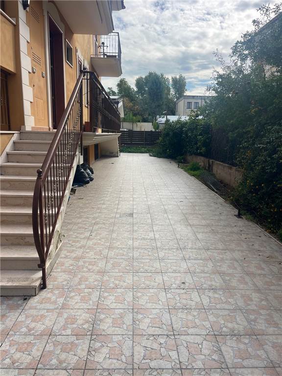 Ampio e curato giardino pavimentato che circonda lo stabile su 3 lati.